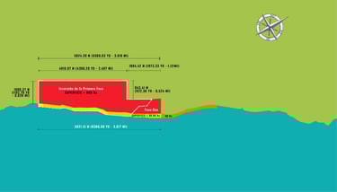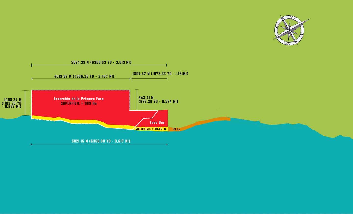 A Unique and Spectacular location of 699.9 Ha (red below) with 5.87 km of beach (3.65 miles) which will be developed in two phases.